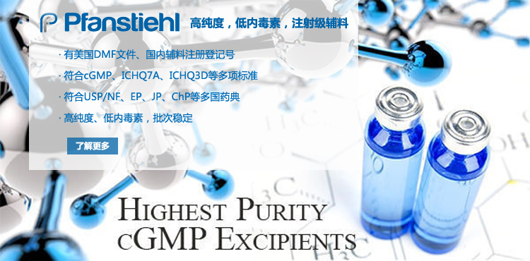 “熱烈祝賀Pfanstiehl的注射級甘氨酸Glycine(G-140)喜獲CDE登記號F20250000403, 這是Pfanstiehl產品獲得的第18個CDE登記號!”甘氨酸在醫藥輔料制劑中應用廣泛,, 可作為緩沖劑,增溶劑,穩定劑等,具有諸多優勢。Pfanstiehl秉承一貫高品質理念,為滿足全球生物制藥行業對于高品質甘氨酸的需求,隆重推出的注射級甘氨酸Glycine (G-140), 具有超高純度,超低內毒素,超低金屬殘留的特點,單獨檢測29種金屬離子,并且新增DNA,RNA,DNA酶,RNA酶和脂肪酶,亞硝酸鹽等多項質量指標的檢測,符合多國藥典規定(USP, EP, BP, JPE, ChP),可用于生物治療性藥物和疫苗的生產。產品信息:· 產品名稱:Glycine, High Purity, Low Endotoxin, Low Metals, USP, EP, BP, JPE, ChP (G-140)· 中文名稱:甘氨酸· 分子式:C2H5NO2· 分子量:75.07 g / mol· CAS號:56-40-6· 產品貨號:G-140產品特點: · 超高純度,超低內毒素,超低微生物含量,超低金屬雜質殘留· 質量指標新增DNA,RNA,DNA酶,RNA酶,脂肪酶和亞硝酸鹽檢測· 符合多國藥典:USP, EP, BP, JPE, ChP· 符合ICH Q3D標準· 符合GMP標準· 已獲DMF和CDE登記號 產品應用:· 緩沖劑· 穩定劑· 增溶劑如果您對Pfanstiehl注射級別Glycine G-140感興趣,歡迎聯系Pfanstiehl 中國區代理商北京西美杰科技有限公司獲得如下詳細的產品概況說明文件和測試樣品。Pfanstiehl Inc.最新產品系列如下,歡迎聯系北京西美杰科技有限公司獲取100g裝免費樣品。北京西美杰科技有限公司為Pfanstiehl中國代理,為客戶提供完善的技術支持與售后服務。歡迎撥打西美杰客服電話400-050-4006或者登陸網站www_xmjsci_com.17kwd.com了解更多信息。 更多>